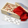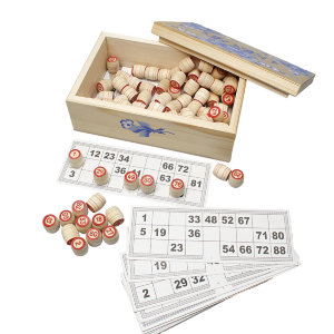 Ход игры: Ведущий, тщательно перемешав бочонки, достаёт из мешочка один из них и объявляет номер. Каждый игрок проверяет и при наличии номер закрывает его и так до тех пор, пока счастливчик не станет победителем.