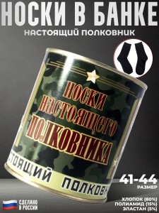 Носки в жестяной банке - это прекрасный и уникальный подарок для вашего мужчины. Эти консервированные носки упакованы в оригинальную железную баночку, которая плотно закрыта. Банка абсолютно герметична, поэтому вы можете взять эти носки с собой в любые экстремальные условия, будучи уверенными, что они останутся сухими. Носки изготовлены из наиболее современных и удобных материалов. Этот состав делает их комфортными, удобными и прочными. Кроме того, благодаря их герметичной упаковке, такой необычный сувенир станет отличным вариантом для рыбаков, охотников и путешественников.