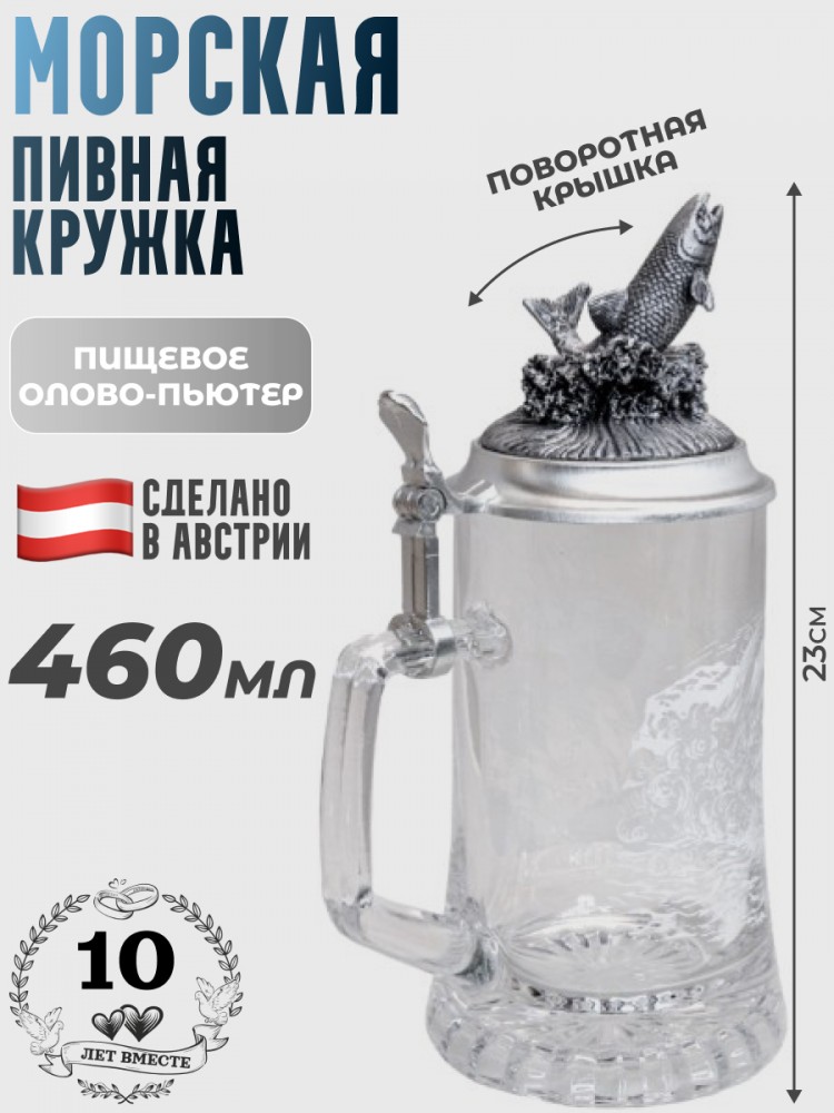 Материал: Стекло, Пьютер (пищевое олово 95%), Полистоун (фигурка рыбы на крышке).
