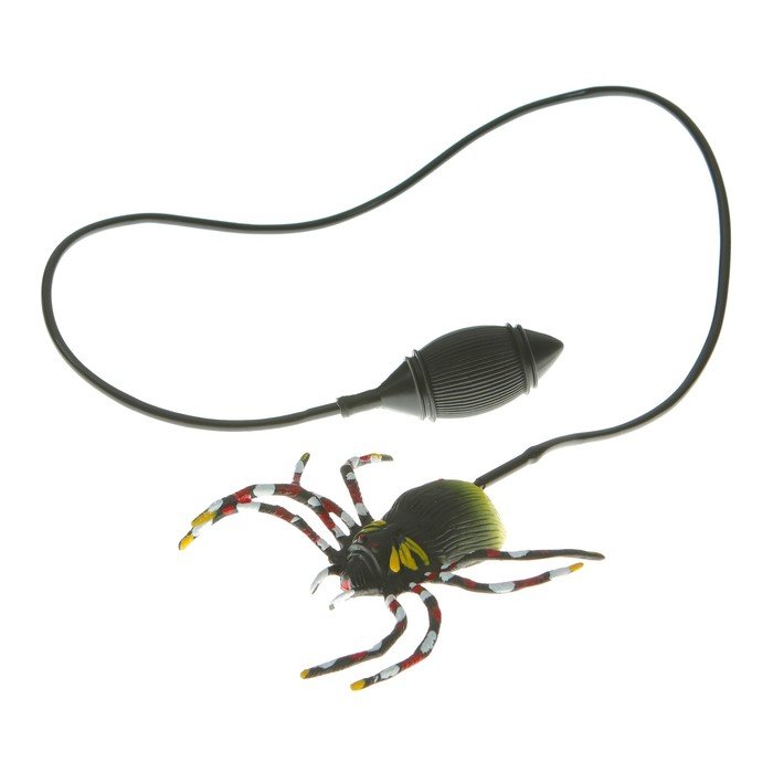 Думаете, как разыграть друзей? Классический способ - прыгающий паук. Кладете на стол, накрываете листочком бумаги и ждете момента когда можно напугать человека работающего за этим столом. Прыгающий паук резиновый со шнурком, по которому поступает воздух от ручного насоса-груши.