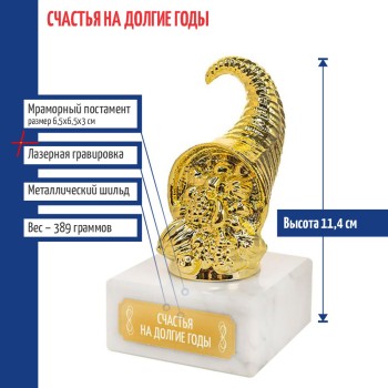 Наградная статуэтка «Рог изобилия» - символ благополучия и семейного счастья. Используется для оформления интерьеров и вручения в качестве сувенира на юбилей, новоселье, годовщину или другую важную дату.