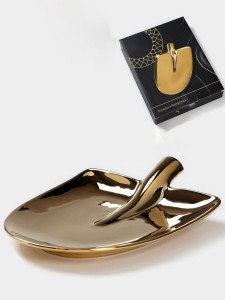 Сервировочное фарфоровое блюдо в форме штыковой лопаты.