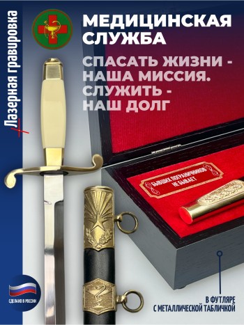 Кортик медицинской службы Вооружённых сил Российской Федерации - воплощение военной медицины, традиции и элегантности. Идеален для коллекционеров оружия, любителей тематики военной медицины и истории.
