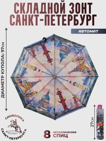 Складные зонты с видами Петербурга пусть каждый дождливый день будет наполнен красотой северной столицы с нашими складными зонтами эти зонты не только практичны и удобны в использовании благодаря своей складной конструкции, но и служат носителями изображений знаменитых достопримечательностей СПБ: от Эрмитажа до Казанского собора. Каждый зонт превратит обыденную прогулку под дождем в увлекательное путешествие по городу-герою Ленинграду, добавляя стиль и индивидуальность вашему образу.