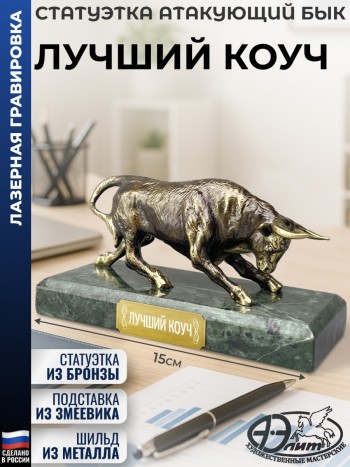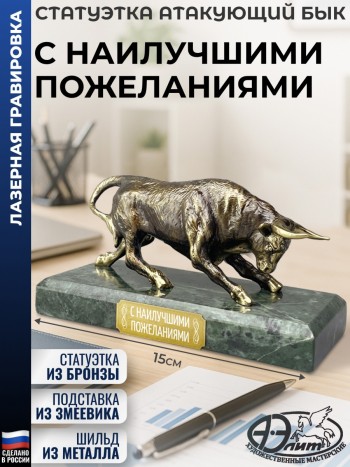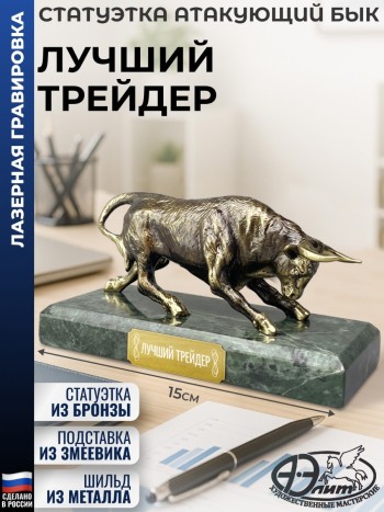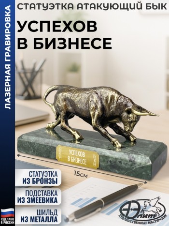 Наградная статуэтка с атакующим быком символизирует силу и решимость, станет центром внимания в любом интерьере и достойным признанием сильной личности.