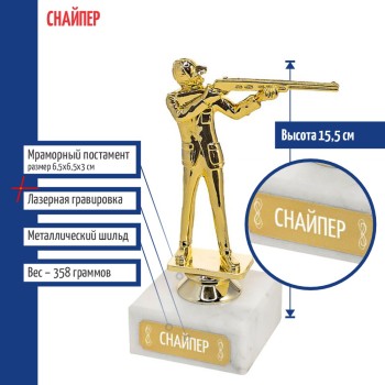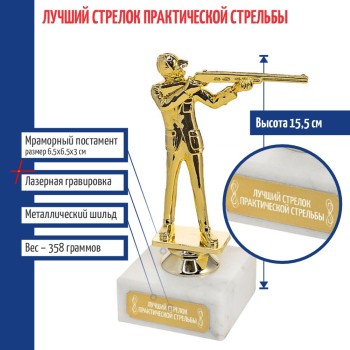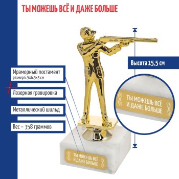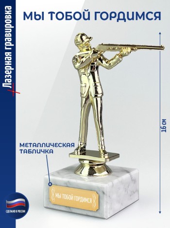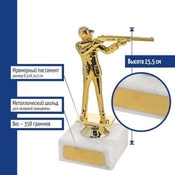 Призовая статуэтка "Стрелок с ружьем" – трофей для награждения участников соревнований, профессионалов или тренеров по стрельбе.