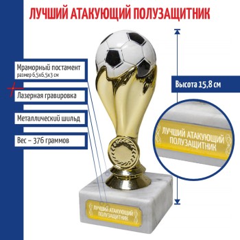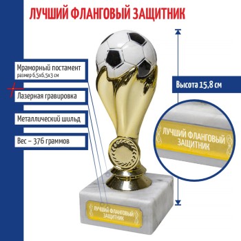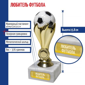Кубок "Футбольный мяч" – это идеальное признание успехов и триумфов в мире футбола. Такой трофей станет незабываемым символом победы в турнирах, лигах или матчах, а также добавит в ваш интерьер атмосферу вдохновения и мотивации.