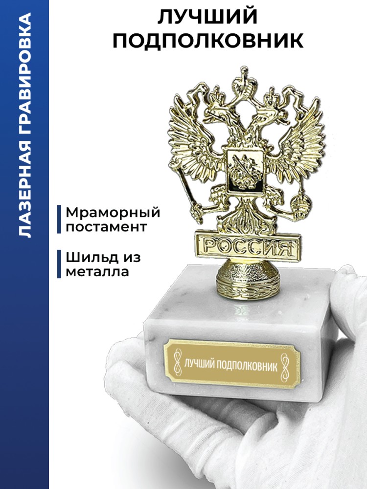 Наградная статуэтка с изображением герба на мраморной подставке. Подходит для размещения в интерьерах административных помещений и коллекций государственной символики.