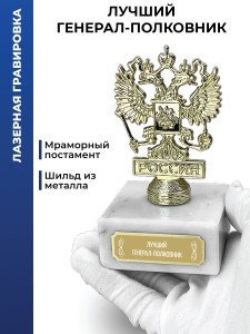 Наградная статуэтка с изображением герба на мраморной подставке. Подходит для размещения в интерьерах административных помещений и коллекций государственной символики.