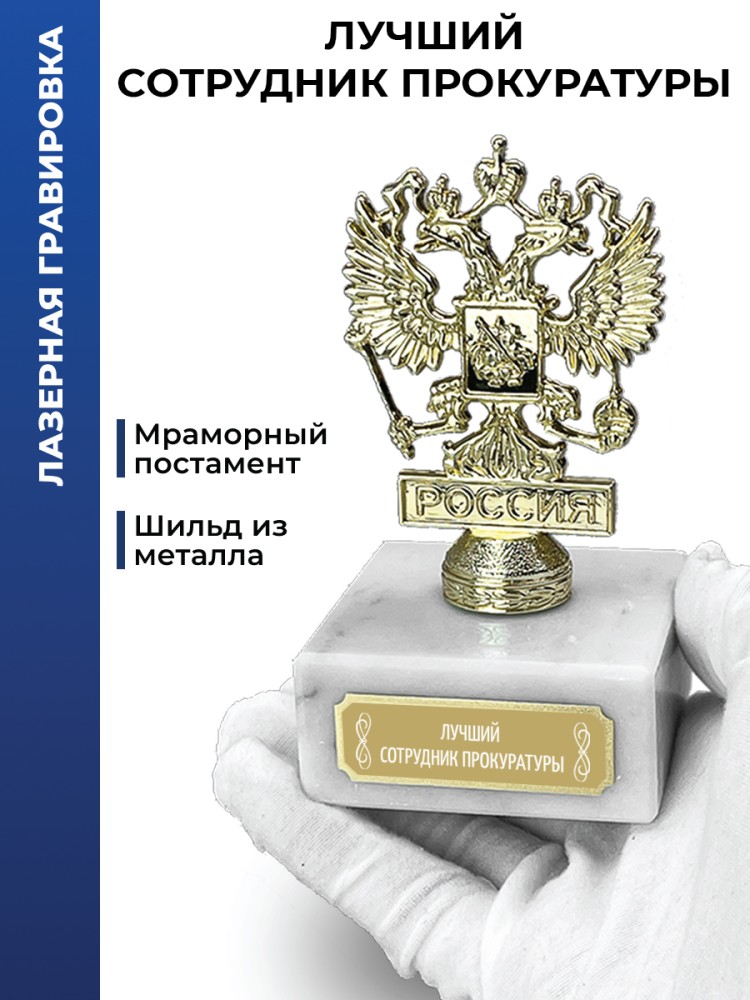 Наградная статуэтка с изображением герба на мраморной подставке. Подходит для размещения в интерьерах административных помещений и коллекций государственной символики.
