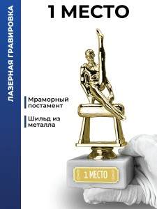 Трофей подходит для индивидуальных и командных награждений, подчёркивая высокие достижения. Пластиковая фигурка на мраморной подставке дополнит коллекцию наград и используется на профильных турнирах.