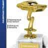Наградная статуэтка с фигурой гоночного автомобиля. Подходит для размещения в интерьерах автоклубов и коллекциях спортивных трофеев.
