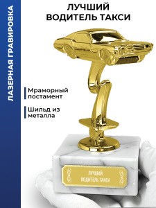 Наградная статуэтка с фигурой гоночного автомобиля. Подходит для размещения в интерьерах автоклубов и коллекциях спортивных трофеев.