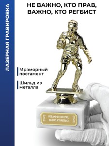 Лазерная гравировка наносится на табличку (шильд), приклеенную к подставке. Размер: 14 x 6,5 x 6,5 см. Высота фигурки без постамента: 11 см. Размер мраморной подставки: 6,5 x 6,5 x 3 см. Размер шильдика (таблички с надписью): 5 x 1,7 см. Материалы: пластик (фигурка), мрамор (постамент). Вес: 375 гр. Упаковка: картонная коробка. Наградная статуэтка «Регби» - предназначена для вручения участникам соревнований, тренерам и поклонникам американского футбола. Оригинальный подарок на любой праздник или награждение. Он станет достойной памятной наградой за победы и достижения от коллектива на память. Символизирует не только личные успехи, но и благодарность за труд и преданность делу. Актуально в качестве новогоднего сюрприза жене, мужу, отцу, взрослым родственникам (папе, дедушке, маме, бабушке), коллегам (начальнику), преподавателю или юбиляру. Такой красивый сувенир подходит для множества знаковых дат и событий дома и в офисе, на юбилеи родителей, международный женский день (8 марта), 14 и 23 февраля, Новый год или день рождения (ДР). Считается хорошим корпоративным подарком как для мужчин (сыну, брату, другу, любимому парню, руководителю), так и для женщин (начальнице, дочери, сестре, подруге или девушке). Регбист - это игрок в регби, для которого важны не только сила и выносливость, но и командный дух. В этом спорте часто говорят: "Не важно, кто прав, важно, кто регбист", подчёркивая ценность характера и преданности игре. 1785
