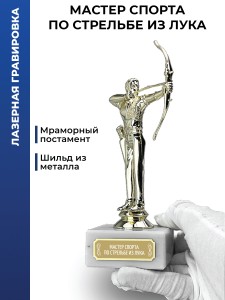 Наградная статуэтка с изображением лучника. Предназначена для награждения участников соревнований, тематических мероприятий и оформления спортивных интерьеров.