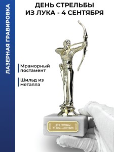 Наградная статуэтка с изображением лучника. Предназначена для награждения участников соревнований, тематических мероприятий и оформления спортивных интерьеров.