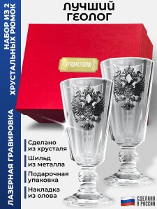 Набор из двух стопок на ножке с гербом - стильный сувенир, подчёркивающий эстетику застолья и сохранение традиций.