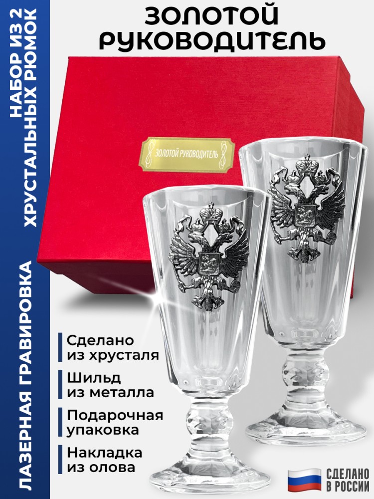 Набор из двух стопок на ножке с гербом - стильный сувенир, подчёркивающий эстетику застолья и сохранение традиций.