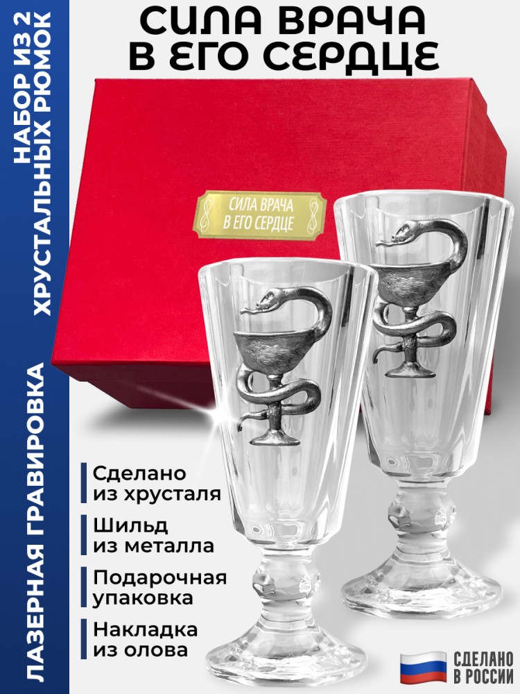 Набор из 2 лафитников Медицина "Сила врача в его сердце (рюмки по 35 мл) - описание товара