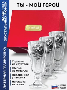 Набор из трех стопок на ножке с гербом - стильный сувенир, подчёркивающий эстетику застолья и сохранение традиций.