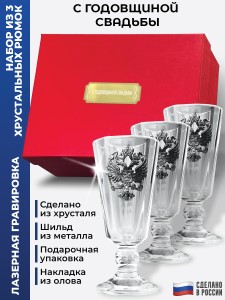 Набор из трех стопок на ножке с гербом - стильный сувенир, подчёркивающий эстетику застолья и сохранение традиций.