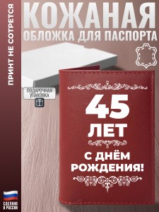 Обложка на паспорт "С днём рождения! 45 лет" из кожи - описание товара