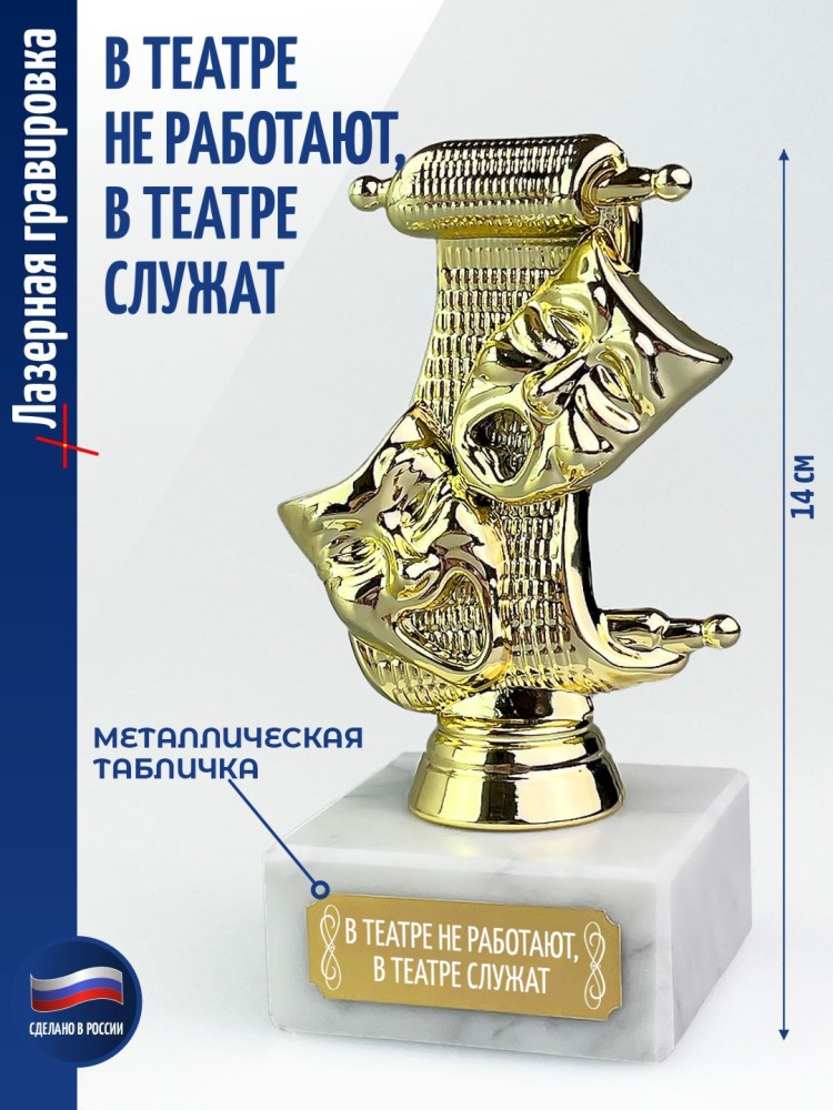 Наградная статуэтка «Театр» - используется для вручения призов на театральных конкурсах, фестивалях и профессиональных мероприятиях, а также для оформления интерьеров сценических пространств.