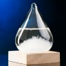 Барометр штормгласс (в нашем случае выглядящий как стеклянная капля) на основании ранних наработок изобретён английским гидрографом и метеорологом, вице-адмиралом Робертом Фицроем в середине XIX века. Прибор представляет собой герметично запаянную колбу со спиртовым раствором, в котором по определённой технологии и в нужных пропорциях смешаны камфора, нашатырь (хлорид аммония) и калийная селитра. Для лучшего результата наблюдения штормгласс размещают возле окна или на открытом воздухе. По внешнему виду жидкости можно определить погоду. Если она прозрачна - за окном солнечно и осадки в ближайшее время маловероятны. Иные состояния предполагают погодные волнения: мутная жидкость означает облачность, мелкодисперсные вкрапления - туман и влажность, крупные "звёздочки" - грозу в летнюю пору или снегопад в зимнюю. Словом, чем яснее жидкость, тем приятнее погода за окном. Важный дисклеймер: к химическому барометру Фицроя следует относиться, скорее, как к интерьерному украшению, поскольку точность его предсказаний, очевидно, ниже, чем у метеорологических служб, полагающихся на более совершенные измерительные приборы.