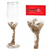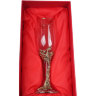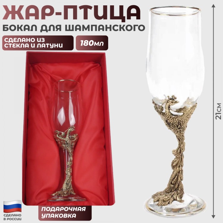 Бокал сделан из стекла и латуни.