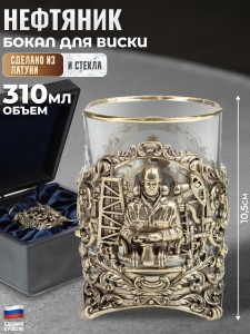 Бокал для виски "Нефтяник" из стекла и латуни в футляре (310 мл) - описание товара
