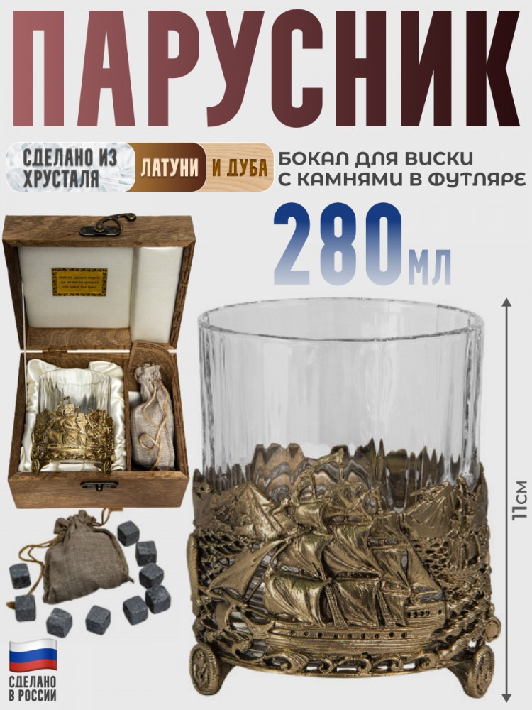 Комплектация: Бокал, 9 камней для виски (грань 2 см), Мешочек, Футляр.