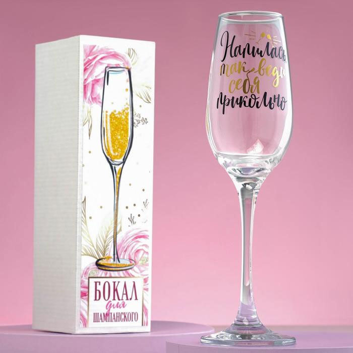 Бокал для шампанского "Напилась, так веди себя прикольно - искрометный и остроумный аксессуар для веселых вечеринок. Он станет источником радости и веселья на любом мероприятии.