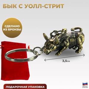 Брелок из бронзы в виде быка с Уолл-Стрит - символ стремительного роста и силы, вдохновлённый финансовым миром и биржевыми легендами.
