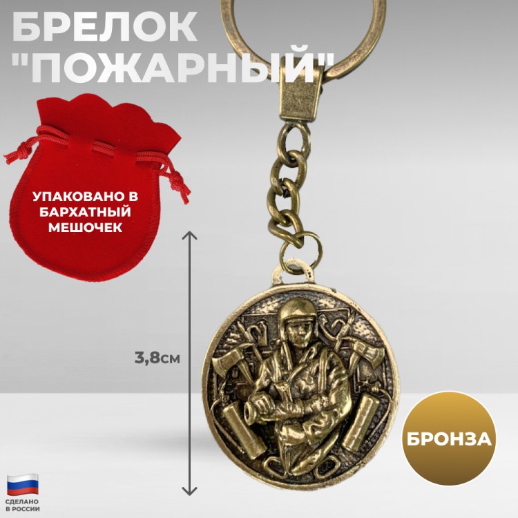 Металлический брелок из бронзы - тематический сувенир с узнаваемой символикой, дополнит связку ключей и украсит коллекцию предметов на пожарную тематику.
