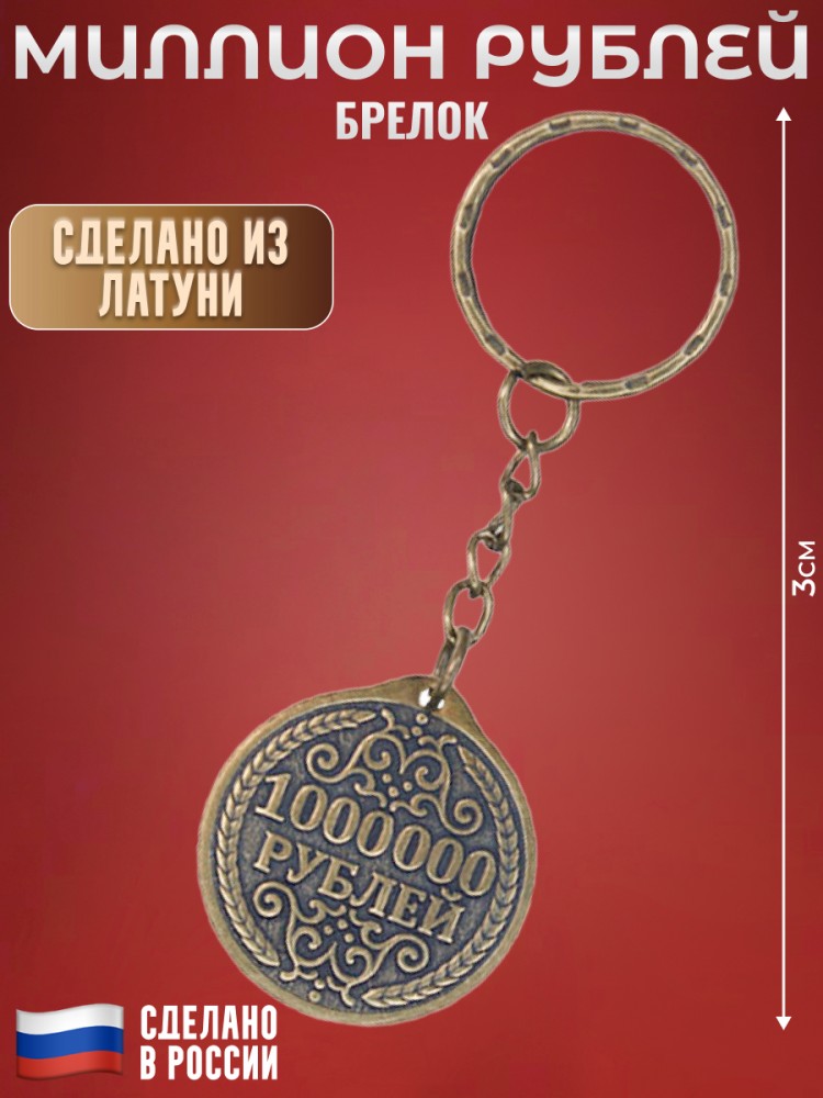 Символизируя богатство и успех, этот брелок в форме миллиона рублей станет мотивирующим аксессуаром в стремлении к лучшему.