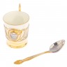 Фарфоровая часть чашки произведена на Императорском фарфоровом заводе (Санкт-Петербург), ложечка - производства Павловского завода им. Кирова (г. Павлово, Нижегородская обл.).
