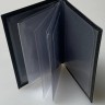 Практичная черная кожаная обложка изготовлена из премиальной кожи, прошитой прочными нитками для долговечности (ровными швами).