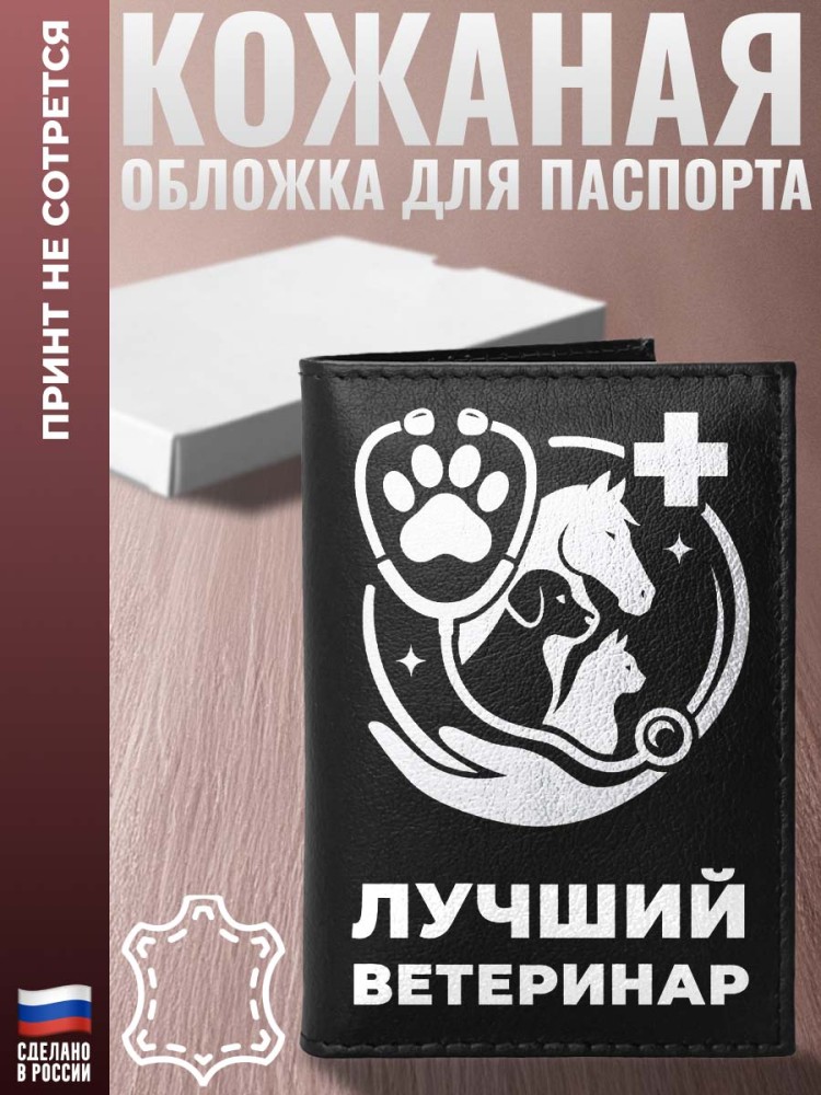 Производитель: Россия. Материал: турецкая натуральная кожа Размеры: 19 х 13.7 см. Подходит для российского паспорта который имеет размеры 12,5х8,8 см. В том числе заграничного паспорта РФ, а также для внутренних паспортов и загранпаспортов (Казахстан, Белоруссия (РБ), Армения, Киргизия, Узбекистан). Упаковка: Белая картонная коробка. Цвет: черный Вес: 55 гр. Практичная черная кожаная обложка для российского паспорта подойдет как подарок мужчин - для друга, папы, дедушки, брата или любимого. Стильный чехол для документов будет незаменимым спутником в походах или автопутешествии и станет надежной защитой от износа. На премиальной коже, прошитой прочными нитками для долговечности (ровными швами), внутри предусмотрен отсек (с кармашками и отделениями для пластиковых карточек) для банковских карт, водительского удостоверения, снилса или полиса. Эта обложка для паспорта - не просто аксессуар, а символ тех, кто с честью готов подчеркнуть свою принадлежность теме изображения. Ветеринар - человек, который лечит тех, кто не может пожаловаться словами. Это профессия сердца, заботы и глубоких знаний. Сувенир подойдёт специалисту в области ветеринарии как благодарность за преданность делу и любовь к животным. 1830