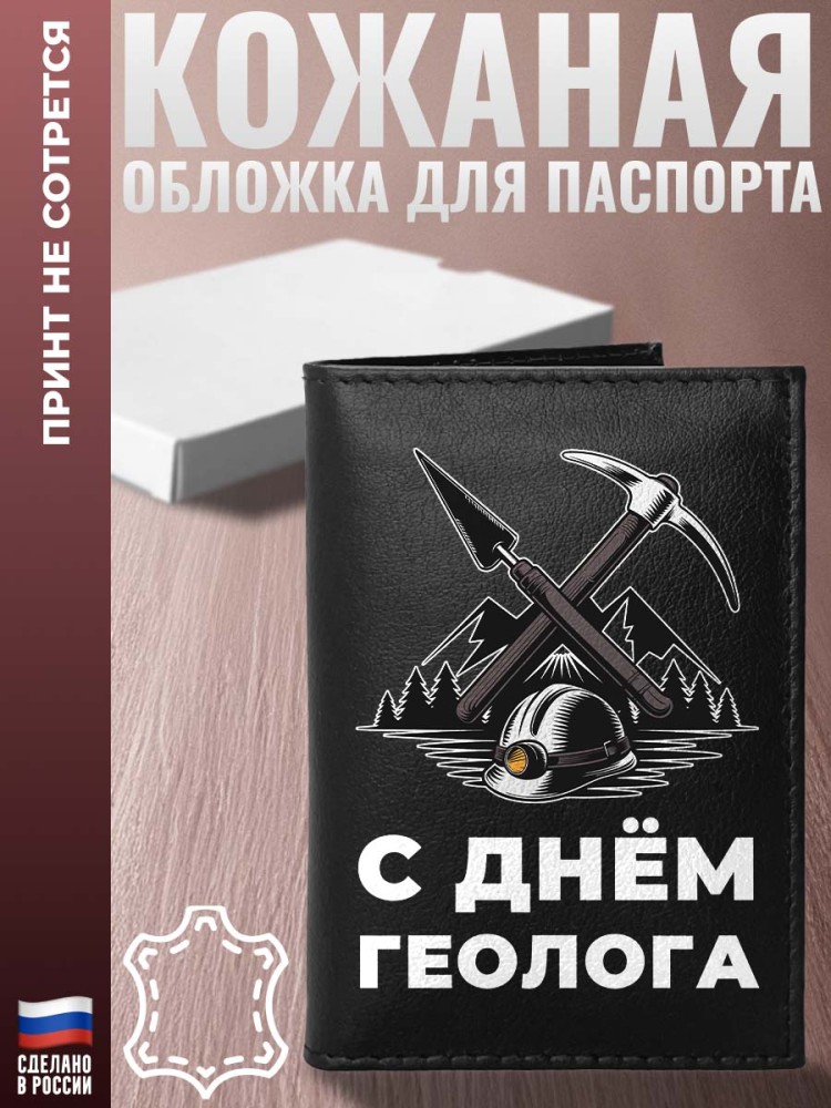 Обложка на паспорт "С днём геолога" из кожи - описание товара