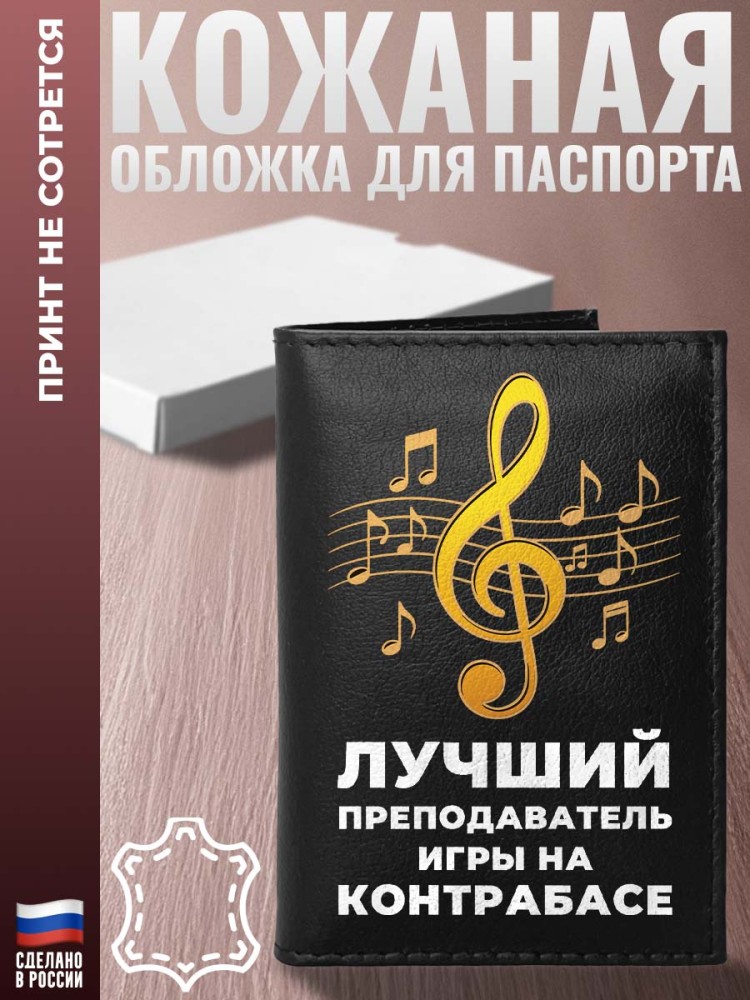 Обложка на паспорт "Лучший преподаватель игры на контрабасе" из кожи - описание товара