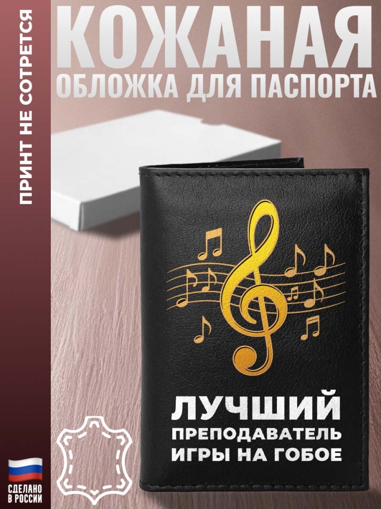 Обложка на паспорт "Лучший преподаватель игры на гобое" из кожи - описание товара