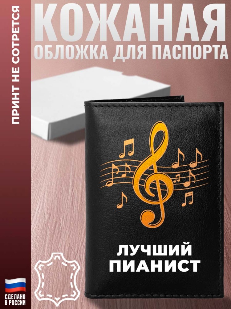 Обложка на паспорт Музыка "Лучший пианист" из кожи - описание товара