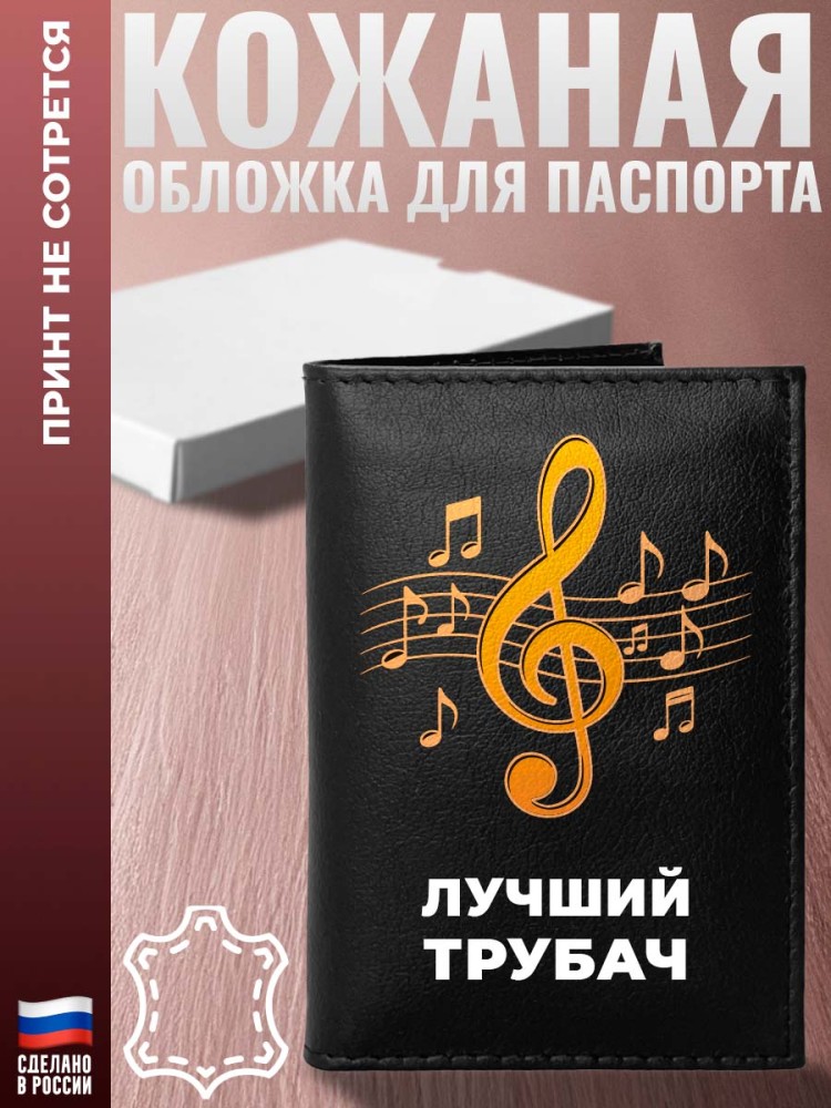 Обложка на паспорт Музыка "Лучший трубач" из кожи - описание товара
