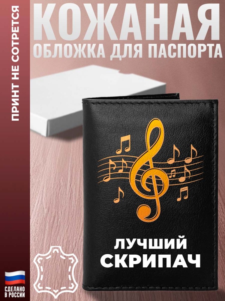 Обложка на паспорт Музыка "Лучший скрипач" из кожи - описание товара