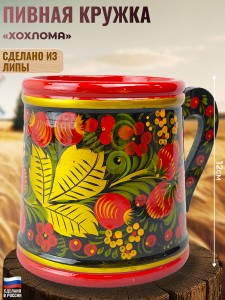 Хохлома - русская народная ручная художественная роспись сувениров и посуды из дерева. Промысел образовался в одноимённом селе в XVII веке и существует до сих пор. Деревянные изделия вытачивают вручную, подготавливают поверхность и расписывают масляными красками. Основные цвета хохломской росписи - красный, золотой, зелёный и чёрный. Далее наносят лак в несколько слоёв, обсушивая после каждого покрытия. Последний этап - закалка, чтобы лаковая плёнка стала глянцевой и блестящей.