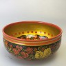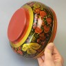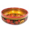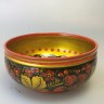 Хохлома - русская народная ручная художественная роспись сувениров и посуды из дерева. Промысел образовался в одноимённом селе в XVII веке и существует до сих пор. Деревянные изделия вытачивают вручную, подготавливают поверхность и расписывают масляными красками. Основные цвета хохломской росписи - красный, золотой, зелёный и чёрный. Далее наносят лак в несколько слоёв, обсушивая после каждого покрытия. Последний этап - закалка, чтобы лаковая плёнка стала глянцевой и блестящей.