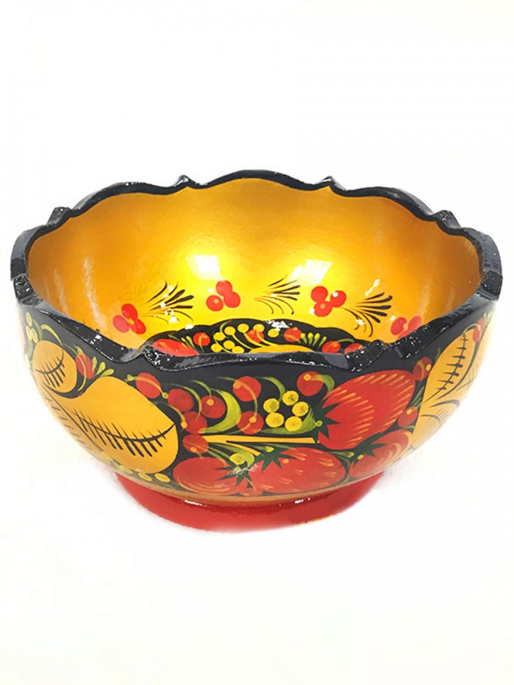 Хохлома - русская народная ручная художественная роспись сувениров и посуды из дерева. Промысел образовался в одноимённом селе в XVII веке и существует до сих пор. Деревянные изделия вытачивают вручную, подготавливают поверхность и расписывают масляными красками. Основные цвета хохломской росписи - красный, золотой, зелёный и чёрный. Далее наносят лак в несколько слоёв, обсушивая после каждого покрытия. Последний этап - закалка, чтобы лаковая плёнка стала глянцевой и блестящей.