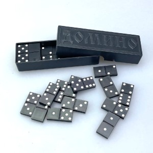 Домино в чёрном пластиковом футляре – классика, которая всегда будет в моде. Идеальный способ провести время в кругу семьи.