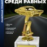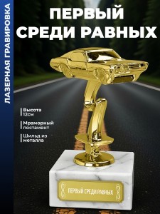 Наградная статуэтка с фигурой гоночного автомобиля. Подходит для размещения в интерьерах автоклубов и коллекциях спортивных трофеев.