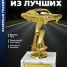 Наградная статуэтка с фигурой гоночного автомобиля. Подходит для размещения в интерьерах автоклубов и коллекциях спортивных трофеев.